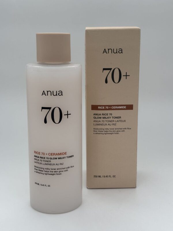 تونر شیری برنج ۷۰٪ آنوآ با آب سبوس برنج و نیاسینامید، پوست را آبرسانی کرده، رنگ آن را یکنواخت نموده و درخشندگی طبیعی و سالم آن را تقویت میکند.