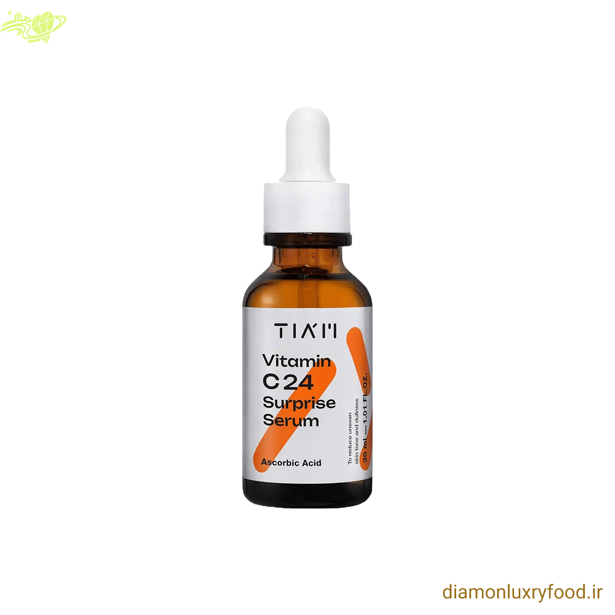 سرم ویتامین C24 تیام با 24% ویتامین C خالص، لکهها و چین و چروکها را درمان کرده و پوست را روشن و شفاف میکند.